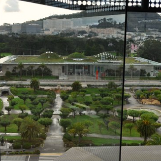 Continuing to her right, the view focused closer, opening the scenery into the park itself. She could see the esplanade between the De Young and the Academy of Sciences with many people walking on the sidewalks. They looked like ants, and the cars looked like Tonka toys.